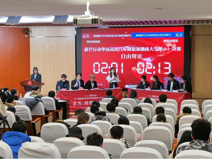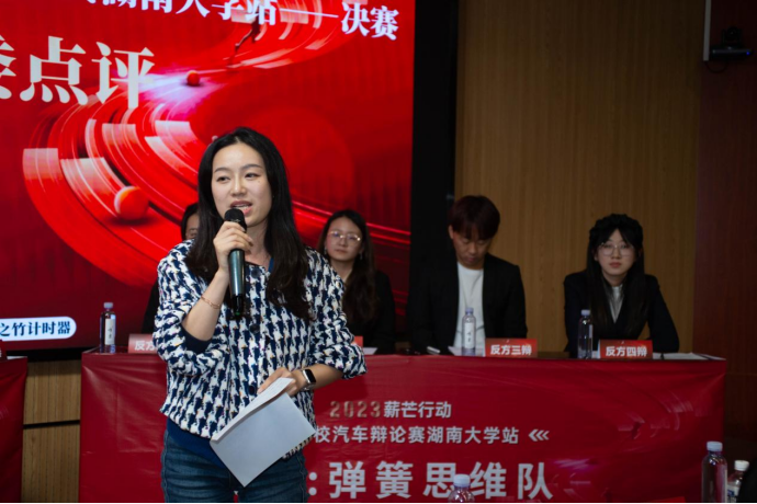 研究生辩论队教练王海天担任评委。本次辩论赛围绕“新能源汽车市场化难点是基础设施缺失/技术缺失”的辩题展开。