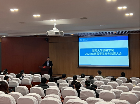 2022年1月18日下午,机械学院召开了2022年寒假学生安全教育大会。机械学院党委副书记贺讯出席本次会议并发表讲话,参加会议的还有学生46人(其中研究生38人、本科生8人)以及各年级辅导员老师。本次大会从多方面强调了假期安全的注意事项,切实加强了寒假留校学生的安全意识。