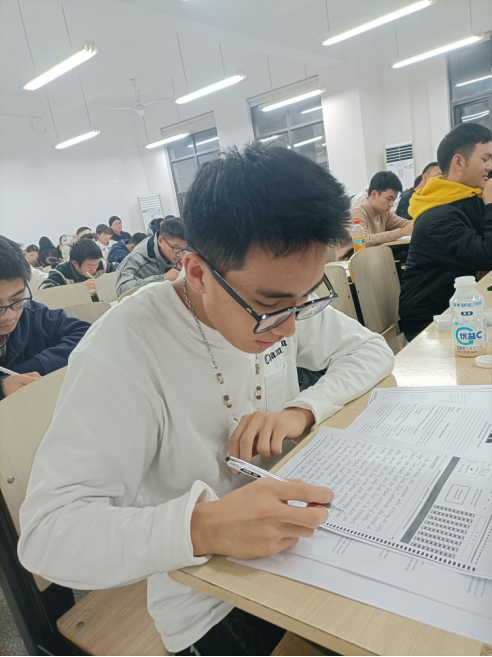 19:00,考试准时开始,大家安静下来开始认真答题。按照四级考试的顺序,最先开始的部分是写作,面对全新的作文题型,不少同学感到了四级考试的难度,对四级考试有了更全面更切实的认识。规定考试时间内,同学们顺利完成本部分考试。