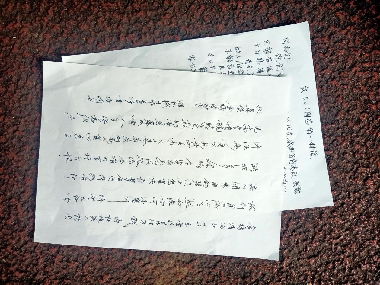 而因为伤病暂时无法参训的同学,也心系场上军训的同学,为他们写了自己想对场上队员的话。