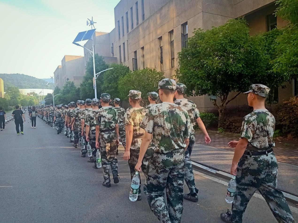 行军路上,安静严肃地紧跟院内队伍,精神饱满地步入军训场