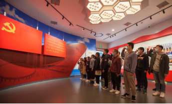在毛泽东同志纪念馆,党员们面对党旗重温入党誓词,郑重宣誓,仿佛又回到了那个热血沸腾的革命年代。