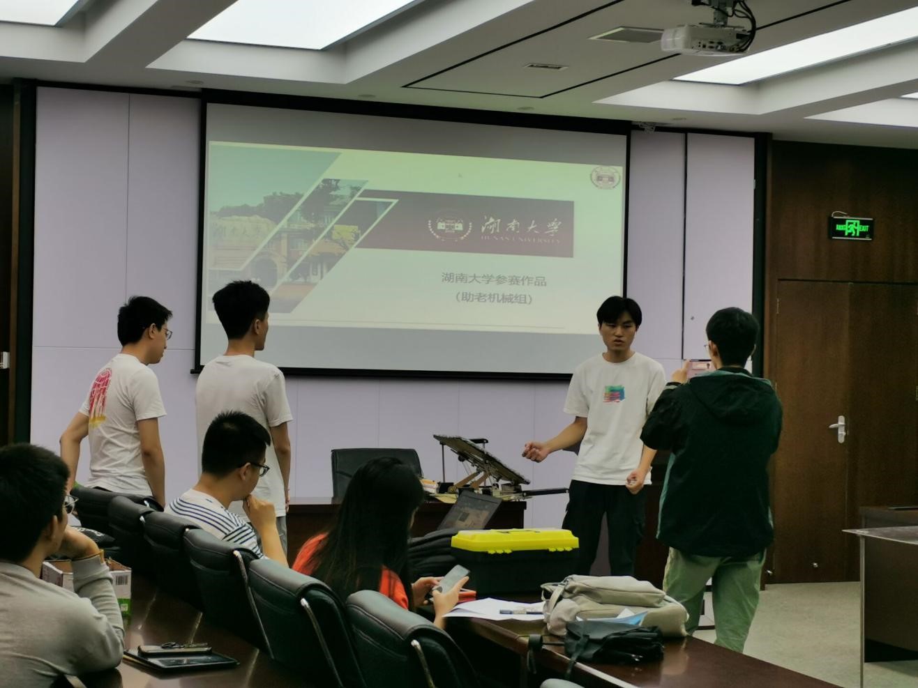 参加比赛的各团队对本组作品进行了最后的核验、检查与测试,并热烈讨论,以确保在比赛中发挥正常水平。小组成员之间再次明确分工,并提前模拟赛场情景,确认展示流程及其中细节等。