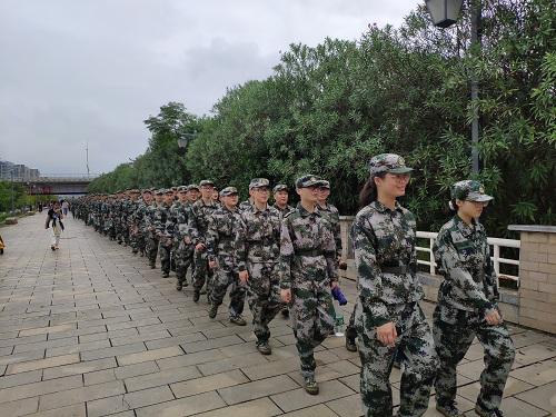 早晨6点35分,同学们早早的于天马公寓篮球场集合。列队点名后,队伍即刻出发步行前往湘江。清晨的湘江薄雾弥漫,一丝丝清幽笼罩在江畔,远处的高楼穿梭在云雾间,近处的绿树摇曳于水岸。同学们沿江列队行进,在教官的带领下时而疾走时而慢跑,远望似一条紧贴湘江,时紧时疏的绿色飘带,整齐之中透出动感,秩序之中饱含激情。清晨,迷雾,沉默的战士们,以行动绽放青春的灿烂光彩。