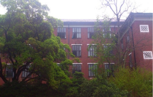多次被日军轰炸,学校被迫西迁辰溪,1946年1月,学校完成从辰溪的回迁,利用运回的辰溪校舍的木料建了“光复后的临时宿舍”,简称复临舍。复临舍不单是一座教学楼,同时也是一个地域、建筑乃至记忆的临界点,因为,她源于一段艰苦的岁月,在这儿学习,我们无时无刻不想到先辈们顽强拼搏的精神。后面的小花园,适合奋发图强,适合激扬文字,也适合悠然自得——这是一个诗情画意的地方。