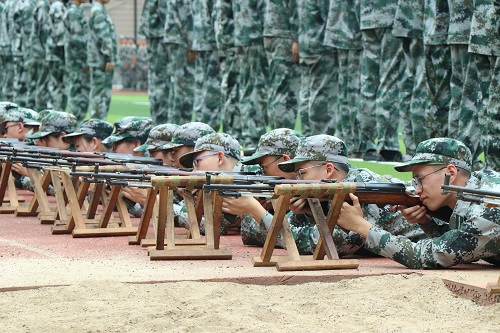 在教官详细耐心地讲解后,新生们开始尝试,卧倒,瞄准,每一个新生都认真严谨,抓紧时间练习,珍惜这来之不易的与真枪亲密接触的机会,几分钟后,练习结束,新生们在教官的指挥下,弹夹朝左,放枪,起身,依依不舍地离开射击预习训练场。