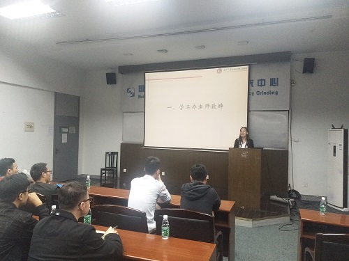 会议伊始,在介绍完到场嘉宾后,由王惠老师上台致辞。王惠老师作为机械院研会的指导老师,她首先开门见山地从研会的成立以及部门架构为大家讲起,明确了每一位成员肩上所担负的责任。她讲到,加入研会即是为同学服务,需踏实肯干,做有意义的实事,方能真正提高自己的能力。同时,她也提到,研会这个大家庭需要研会的每一位成员用心去经营,提倡大家积极为研会的发展建言献策,努力把研会建设的更好、更出色。王老师的谆谆教诲令在场同学对各自的工作有了更深刻的认识,也坚定了大家努力做好工作的决心。