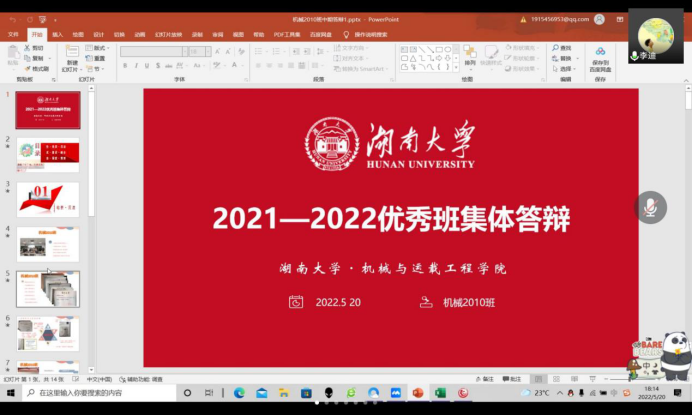 为进一步加强班级平台建设,合理、有效开展优秀班集体创建活动,2022年5月20日晚,2021-2022学年度机械学院优秀班集体创建中期答辩顺利进行,为了保证疫情防控,本次答辩改为线上进行。会议邀请谭想老师、李迪老师和方婷老师为本次答辩比赛的评委,由各班负责人参加本次答辩,在多方共同努力下,本次答辩顺利完成。