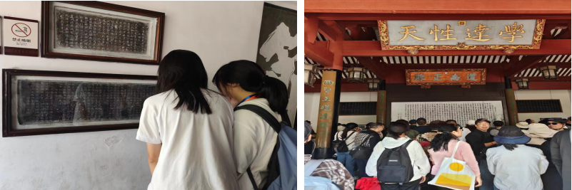 10月20日,智车2301班团支部组织本班同学,在岳麓书院开展主题团日活动。进入岳麓书院,赫曦台映入眼帘。“赫”意味着红色,“曦”意味着初生的太阳。同学们在赫曦台上欣赏诗句,感受到青年的朝气。在庄严古朴的建筑下,千年学府的文化气息扑面而来。“惟楚有材,于斯为盛”同学们齐声诵读门前的对联,明白总书记口中 “‘斯’不仅指地方,也指时代”的含义,再结合“敢为人先,实事求是”的校训,深刻体会到处于新时代的湖大青年的使命与担当。