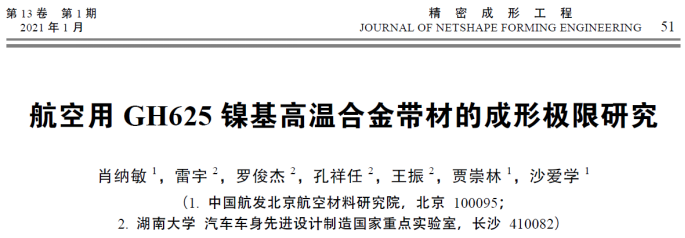 在学习上,他针对镍基高温合金材料,采用理论预测和试验测试相结合的方法,研究了不同牌号的镍基合金带材的成形性能,并发表了中文核心期刊论文一篇:《航空用GH625镍基高温合金带材的成形极限研究》。