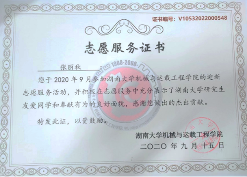 张丽秋表示她非常希望能够加入学生会等学生服务组织,为老师和同学们提供帮助。在2019年刚入学时,她便竞选担任了班级宣传委员,并且加入了机械院研究生会,担任留学生部副部长一职。张丽秋在工作岗位上尽职尽责,于2020年担任起了机械院研究生会副主席一职。她说:“我的工作主要目的是建立无码破解学生与留学生团体之间的友好交流,因此我们积极组织各类活动,来帮助留学生团体更好的了解中国了解无码破解