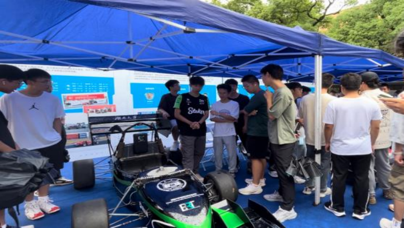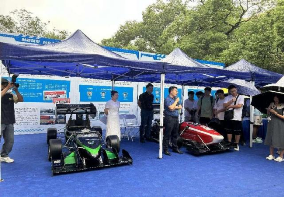 赛车队自主研发、设计、制作。赛车队自2006年成立以来,已成功自主研发了16代高性能赛车,赛车设计从最初的传统油动赛车逐步扩展到电动赛车、无人车领域。赛车队吸引了来自多个学院的学生参与,在国家级相关赛事中多次获得全国总冠军,并代表中国队参加世界级的大学生方程式赛车赛事,成为学校的标志性科技实践团队。此次展出的HUR-2023 赛车采用半单体壳后车架设计,结合四缸自然吸气引擎,实现了约0.2kw/kg的功率质量比,并在4.0秒内完成0-100km/h的加速。该赛车在设计和制造中注重轻量化、舒适性和易操控性,不仅确保了性能,还提升了车手的驾驶舒适度和操控的顺畅性。