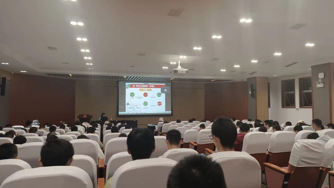 2022年10月19日晚,机械院2022级全体大一新生入会参与了学生教学事务培训讲座。讲座的主会场设在机械院院楼401,两个分会场分别设在中楼106、217。本次讲座特邀请到学院教学办左建平老师给同学们进行讲解,辅导员王玉迪老师、教学办王丹鸶老师出席了会议。