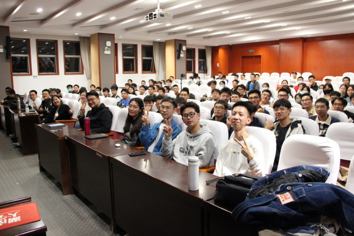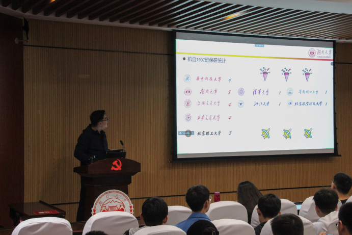 的赖彦佐为大家讲解了如何联系到导师和本校的优惠政策;保研至上海交通大学的戴婧为大家介绍了她在机创大赛中获得国家一等奖的经验;保研至上海交通大学的郑伟伦展示了他对待学习认真专注的态度;最后保研至华中科技大学的张健同学分享了他学习和保研过程的一些经验心得。台下的同学们也提出了一些关于保研和学习上的问题,学长学姐也都一一作出解答。