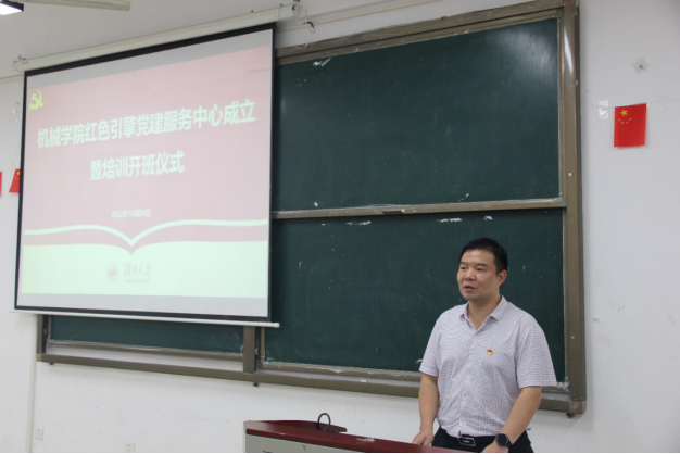 首先,张老师介绍了与会领导老师和中心筹建情况。接着,学院党委副书记贺迅老师为中心成立送上寄语并宣布中心成立。贺书记讲解了我们学院百年历史,在红色引擎的驱动下坚持高质量发展,党建服务中心也将定名为红色引擎,一是同学院相呼应,二是引擎即心脏,红色引擎便指努力向党、追求为人民服务的心,这是每一位党员都本应具有的。