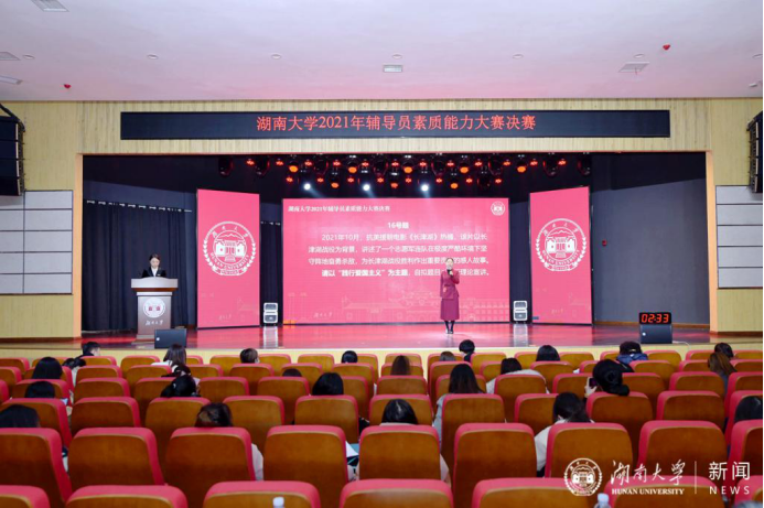 在比赛中,叶胜老师宣讲了“中国特色社会主义制度优越性”,并在随后进入谈心谈话比赛环节;孙文婷老师宣讲了“湖大人的新长征路”。