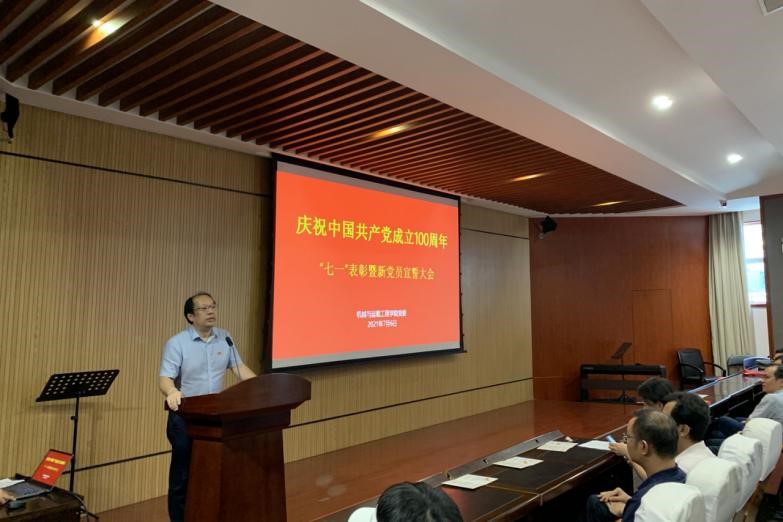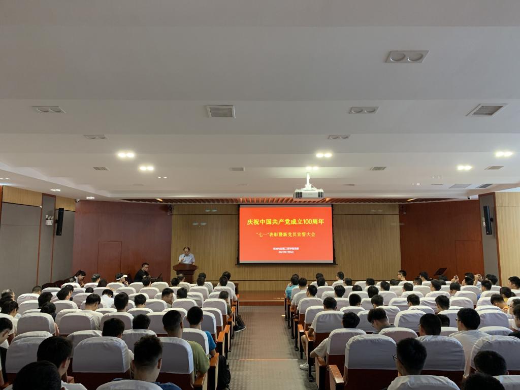 庆祝中国共产党成立100周年“七一”表彰大会在学院401报告厅顺利召开,会议由学院党委副书记易洪波主持,学院全体党委委员、正处级组织员、全体受表彰对象、师生代表以及各学生党支部书记、支委和全体2021年新发展党员出席了会议。