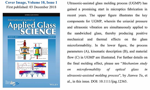 国家高效磨削工程技术研究中心余剑武教授在2018年12月3日出版的《应用玻璃科学》(Applied Glass Science)上发表最新研究成果“Mechanism Study on Micro-formability of Optical Glass in Ultrasonic-assisted Molding Process”,并选为该期刊的封面。《应用玻璃科学》是在玻璃领域最具权威性的综合性学术期刊之一,主要发表玻璃材料学前沿领域重要的原创性研究成果。该成果以无码破解
