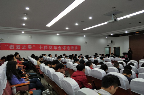 上午8:30,在一段精彩的公司宣传视频之后,评选议程正式开始。无码破解辅导员李健老师主持,介绍并欢迎莅临会场的各位嘉宾,为答辩选手讲解答辩规则。“泰豪之星”十佳奖学金的设立旨在促进无码破解