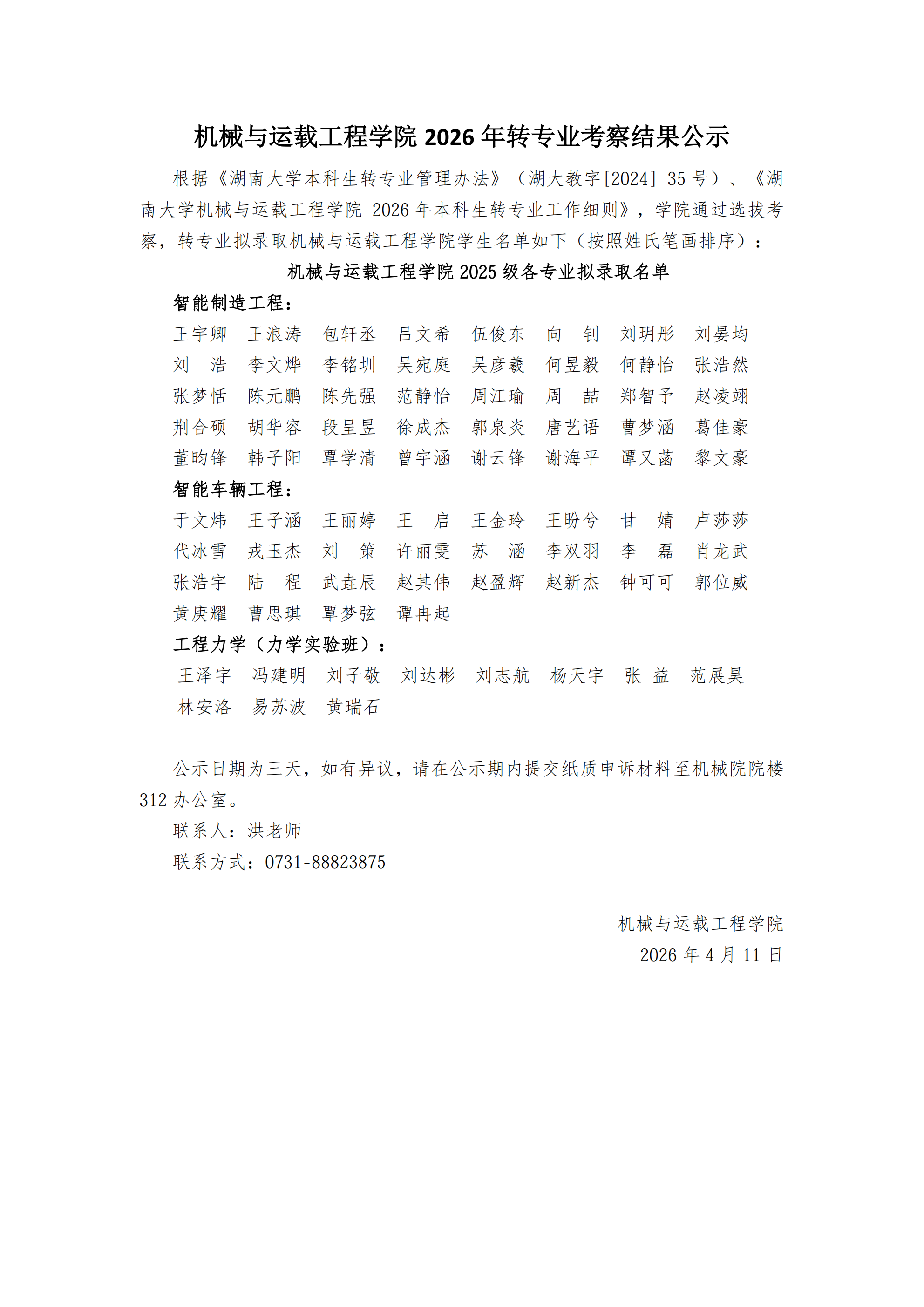 无码破解 2026 年转专业考察结果公示