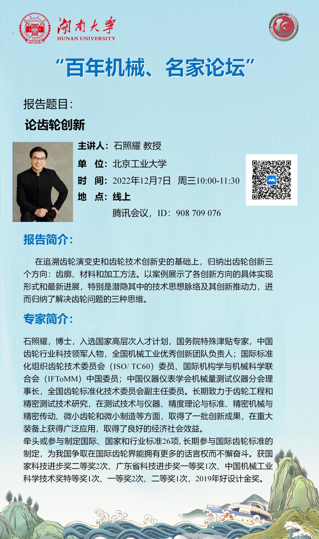 百年机械、名家论坛-石照耀教授