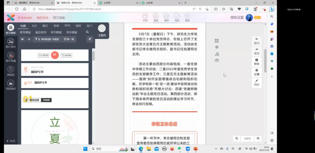 宋秋睿同学讲解了排版公众号推文常用的网站和注意事项,并向大家详细地介绍了排版中所需用到的具体操作。接着,以一篇文章为例,当场向大家展示了如何针对内容选择操作并开展排版工作。